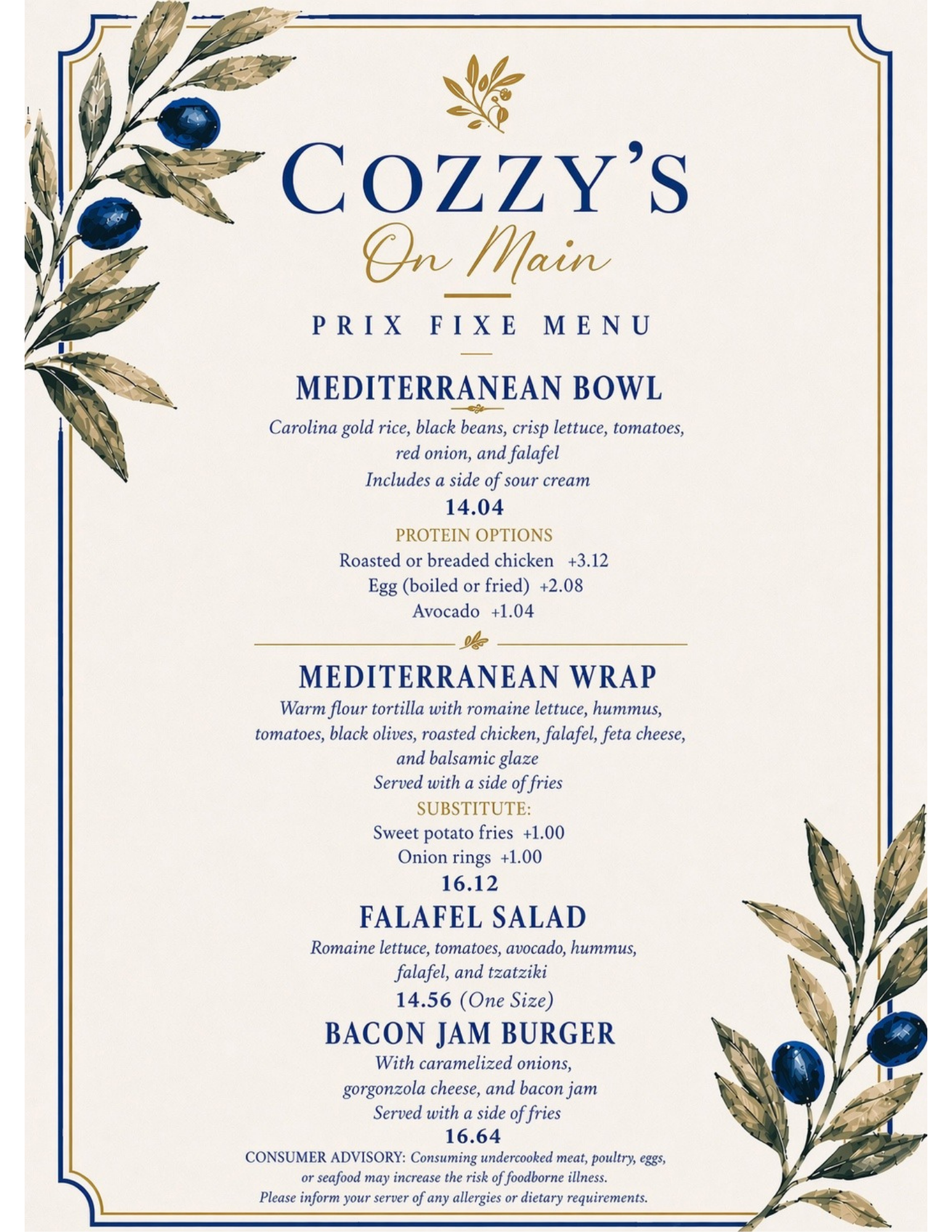 Tax and gratuity are typically not included in the menus. Some menus are for “Dine-In” or “Take-Out” only and some are “Dine-In” & “Take-Out“. Check the list below. Regular menus will still be available.